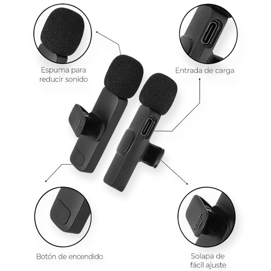 Microfono K9 Inalambrico 2 x 1 Solapa Para iPhone/tipo C